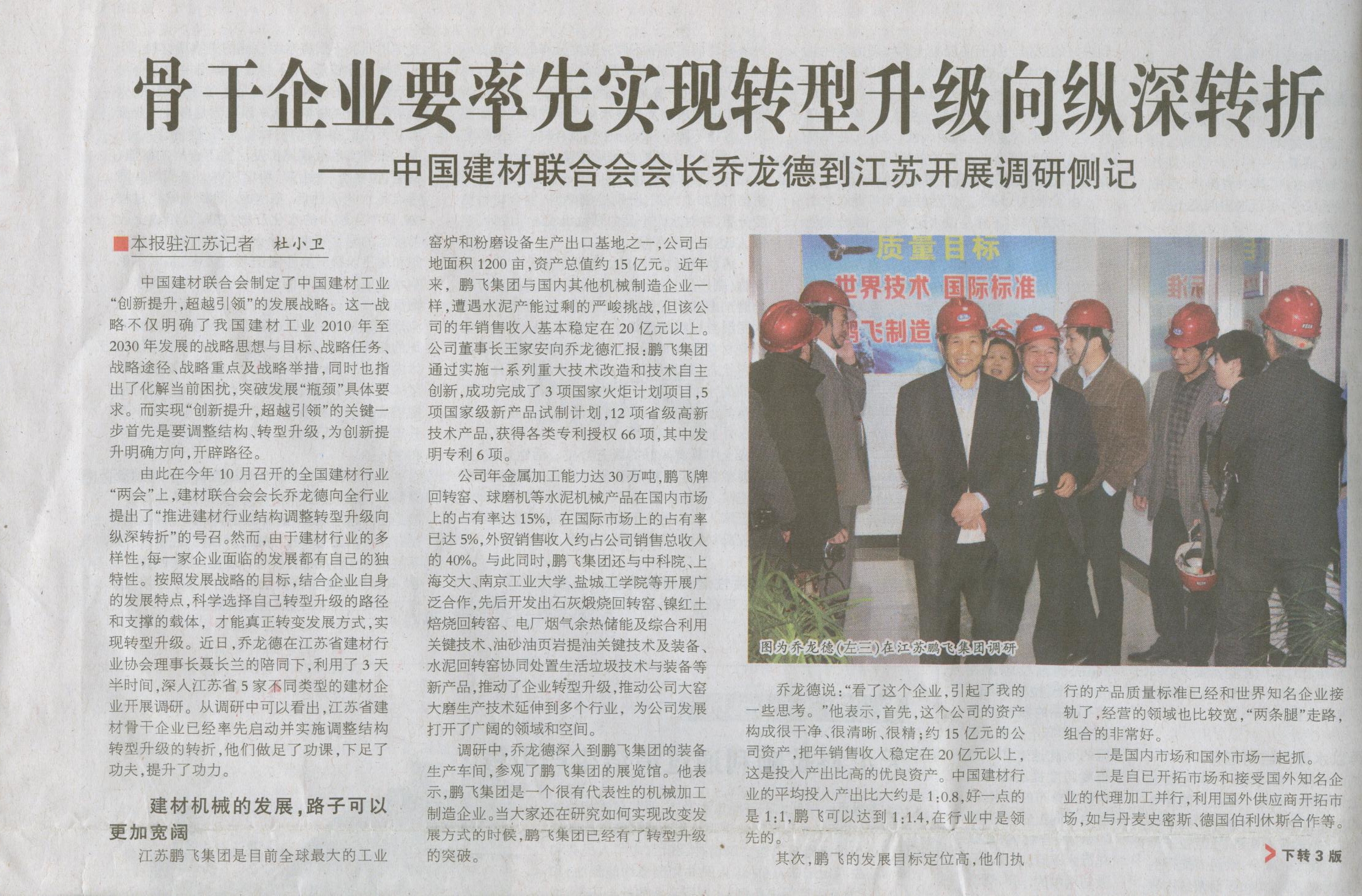 骨干企業要率先實現轉型升級向縱深轉折——中國建材聯合會會長喬龍德到江蘇開展調研側記