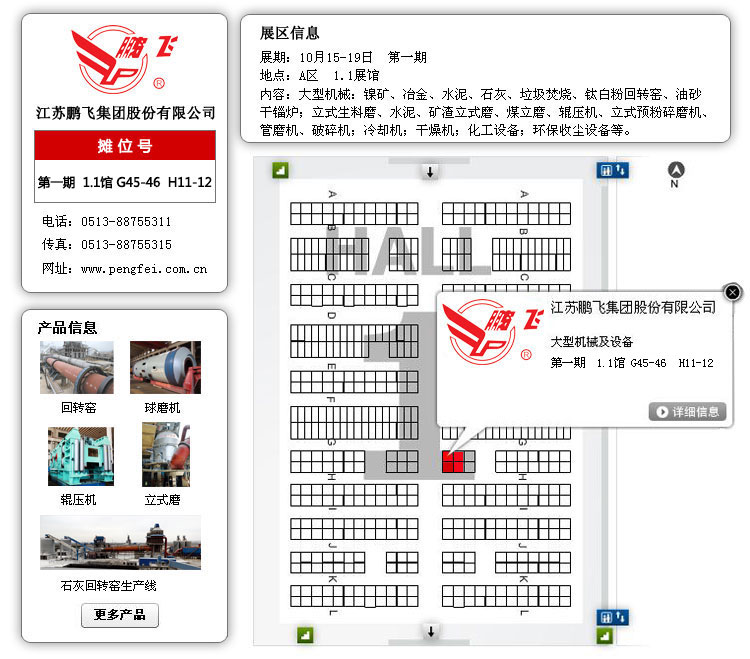 江蘇鵬飛集團(tuán)在第118屆廣交會(huì)上精心布置展位,印發(fā)所產(chǎn)各類成套設(shè)備的介紹手冊(cè),并運(yùn)用全景水泥生產(chǎn)線模型現(xiàn)場(chǎng)演示,委派具有多年工作經(jīng)驗(yàn)的銷售、技術(shù)、售后等專業(yè)工作人員為顧客詳細(xì)介紹新產(chǎn)品、新技術(shù),全面分析解答各類設(shè)備從購(gòu)買到投產(chǎn)使用以及售后服務(wù)等每個(gè)環(huán)節(jié)的問(wèn)題,為您排疑解難,與您達(dá)成共識(shí)。同時(shí),也希望能和更多的國(guó)內(nèi)外公司加強(qiáng)聯(lián)系,互相合作,為客戶提供更加完美的產(chǎn)品。