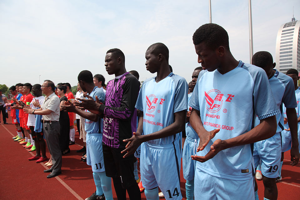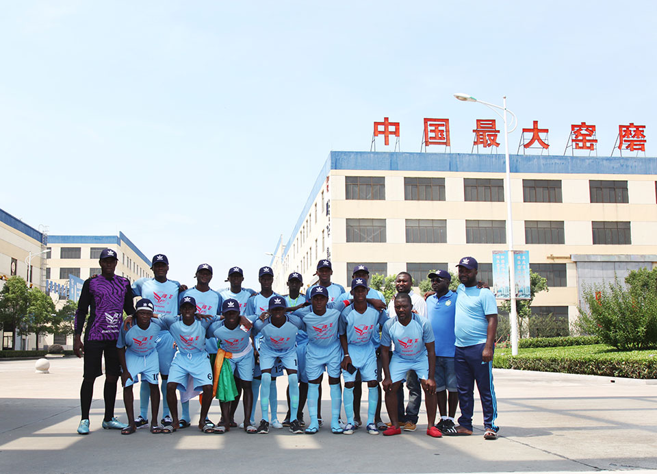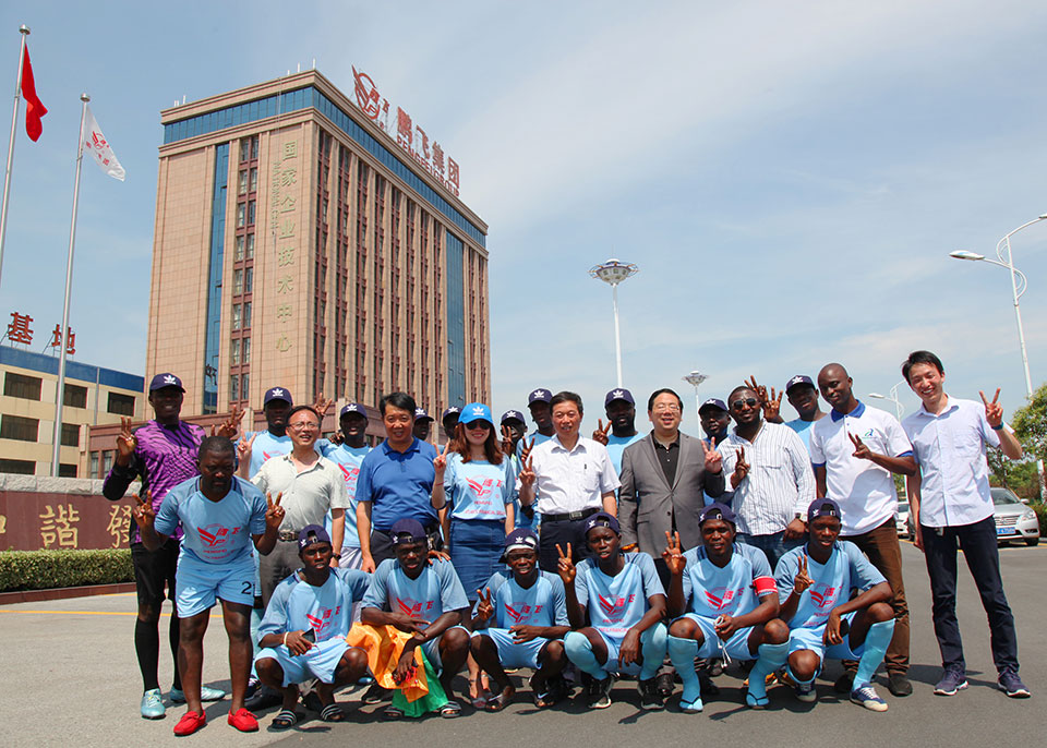 恰逢江蘇鵬飛集團與*達成建設年產100萬噸水泥粉磨站項目合同,應江蘇鵬飛集團的邀請,7月15日*U17隊來到海安,并在海安城南實驗中學與我縣教育聯隊舉行一場國際足球友誼賽,本次比賽由江蘇鵬飛集團全程贊助。時值盛夏,天氣炎熱,但一點也不影響比賽的順利進行,球員的激情和觀眾的熱情充盈整個賽場,場面和諧融洽,雖為比賽,實則是相互交流學習,充分發揮了友誼第一,比賽第二的精神。此次友誼賽是我縣本土球隊首次與國際球隊接洽,在比賽中也讓我縣教育聯隊受益匪淺、感觸頗深,對今后青少年校園足球教育大有裨益。比賽結束后,董事長王家安帶領*U17足球隊員參觀了鵬飛集團生產基地,并舉行座談及饋贈禮品,簡單的一場足球賽,卻為譜寫中非友誼添上實實在在的一筆。