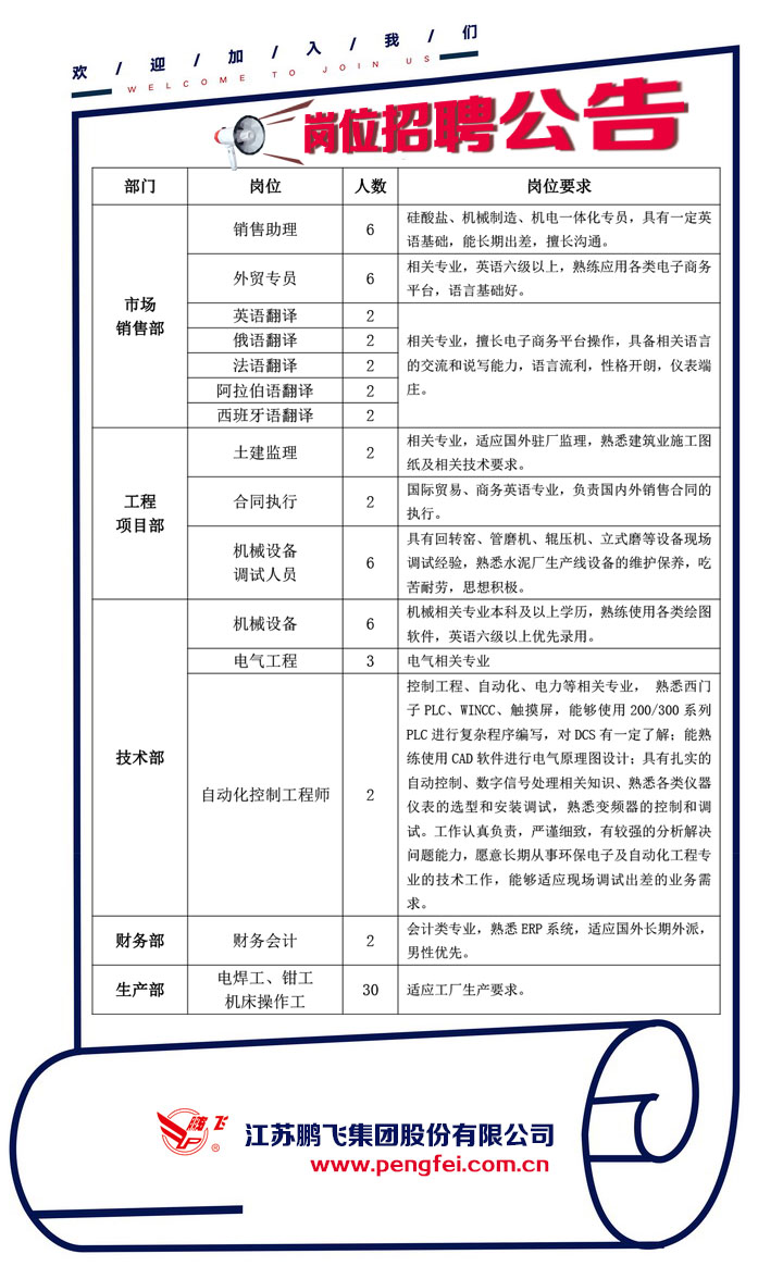 公司因發展需要,面向社會招聘以下職位人員,請直接電話聯系或者到公司面試洽談。