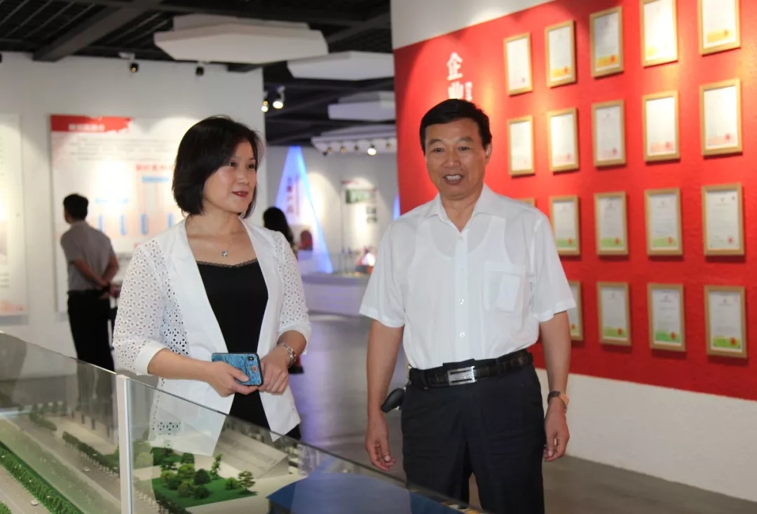 董事長王家安陪同全國建材裝備標準化技術委員會秘書長王玉敏參觀鵬飛集團展示廳