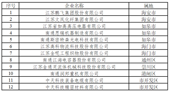 2019年度國家知識產權示范企業(南通12家)