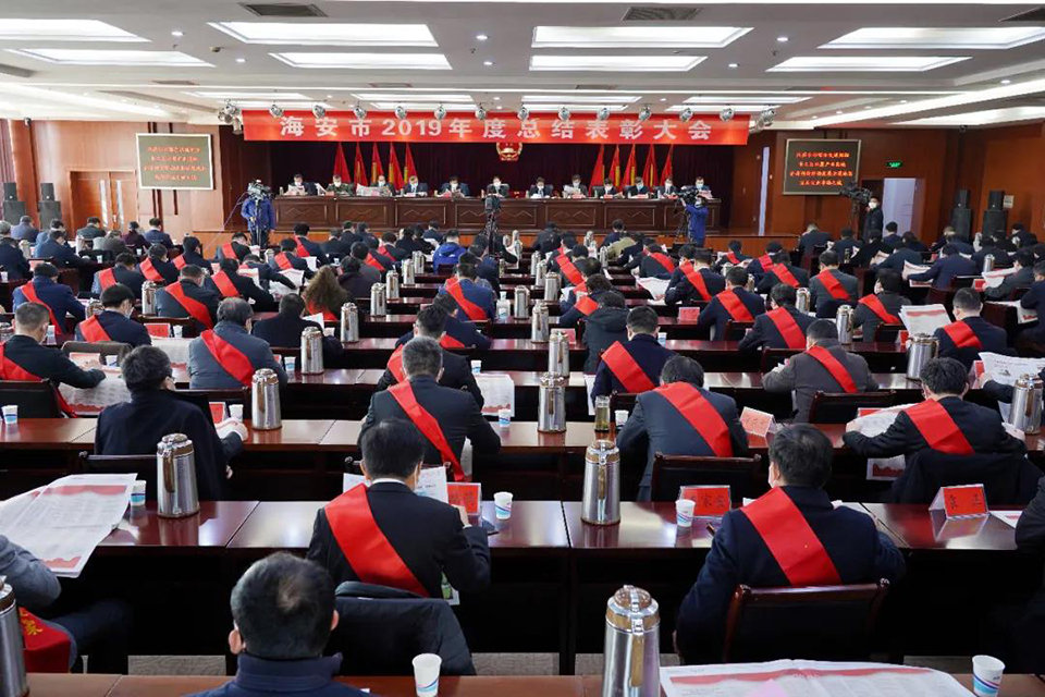 3月14日上午,海安市召開2019年度總結表彰大會,表彰全市各條戰線涌現的先進單位和個人,由于受新型冠狀肺炎疫情的影響,會議實施一人一桌簡便召開。會議設主會場和分會場,由海安融媒體中心進行現場直播。市四套班子全體負責人,各區鎮、各部門主要負責人、受表彰對象代表出席會議。會議由于立忠市長主持,宣讀表彰決定,獲獎單位分別上臺領獎,顧國標書記做了重要講話。鵬飛集團榮獲海安市委、市政府授予的杰出貢獻獎、工業百強企業、開放型經濟先進企業、海安市市長質量獎、王家安董事長當選六星級企業家。