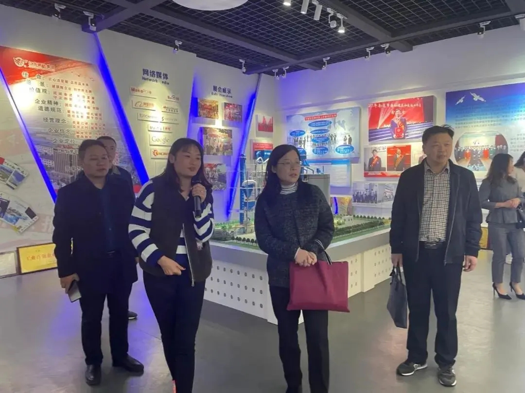 施偉慧一行還參觀了集團產改辦公室。沈吉祥介紹道,江蘇鵬飛集團股份有限公司積極響應習近平總書記關于新時代產業工人隊伍建設改革的指示,深入開展產業工人隊伍建設改革工作。一是推行“三評三優先",增強職工創新活力;二是推行“三獎三兌現",激發職工創新動力;三是推行“三晉三掛鉤”,挖掘職工創新潛力。