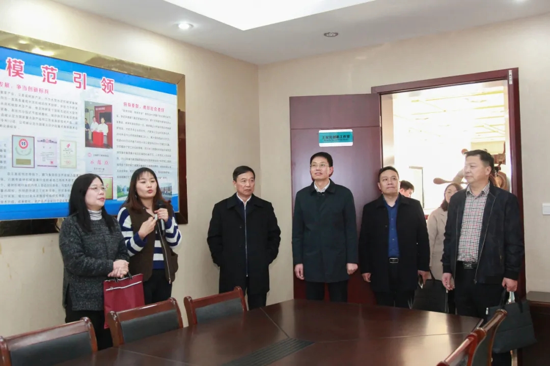 施偉慧一行參觀了王家安勞模創新工作室。公司董事長王家安表示,創新工作室成立于2007年,現有成員19人。工作室圍繞市場需求開展建材、環保、冶金、化工機械成套設備的研發設計、新技術的運用與產品技術改進工作。工作室累計完成12項國家、部、省級新產品開發,獲國家級新產品獎2項、江蘇省首臺(套)技術裝備3項,獲國家授予ZL權30項。