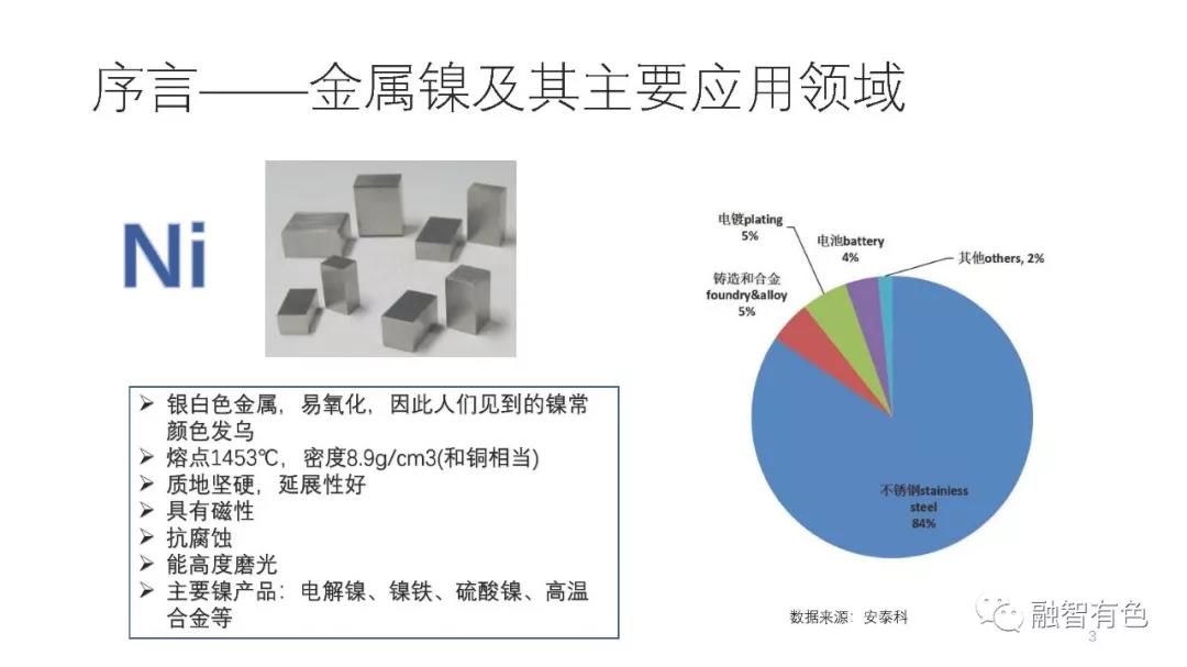 按:金屬鎳是一種性質(zhì)優(yōu)異的基礎金屬,在不銹鋼、電鍍、鑄造及合金、動力電池等領域廣泛。特別是近年來由于新能源汽車長續(xù)航里程的要求,使得高鎳三元動力電池受到大家的極力熱捧,由此又帶動了鎳在新能源領域的高速增長,為鎳的應用再次錦上添花。