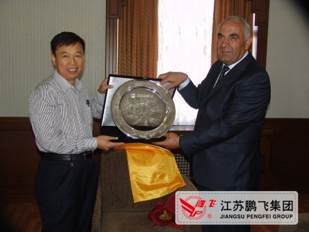 2012年5月30日,江蘇鵬飛集團(tuán)董事長王家安先生應(yīng)阿塞拜疆GEMIKAYA GROUP業(yè)主的邀請,參加了水泥廠投產(chǎn)一年的慶典活動,阿塞拜疆總統(tǒng)及NAXCIVAN總統(tǒng)親自參加水泥廠慶典活動,總統(tǒng)對鵬飛集團(tuán)的工程項(xiàng)目建設(shè)給予了高度評價,總統(tǒng)先生并與鵬飛集團(tuán)董事長王家安先生合影留念。阿塞拜疆電視臺、NAXCIVAN電視臺及阿各大新聞媒體及時報道總統(tǒng)出席GEMIKAYA GROUP水泥廠投產(chǎn)一年的慶典活動情況。